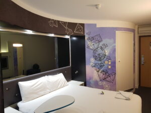 The hotel itself was pleasant; nice rooms, well-decorated, spotlessly clean. On arrival, the door was opened by a young lady dressed in jeans and a t-shirt (I actually thought she was a member of the public coming to open it for us). On entering, it was a bit of a surprise that there was no reception desk – very strange not to have a welcoming focal point to aim for. She checked us in on an iPad, sorted our key out and explained it would give us access to the hotel, lift and our room. She indicated the bar area, explained that free tea and coffee was also available and pointed us in the direction of the lifts. Polite and pleasant.